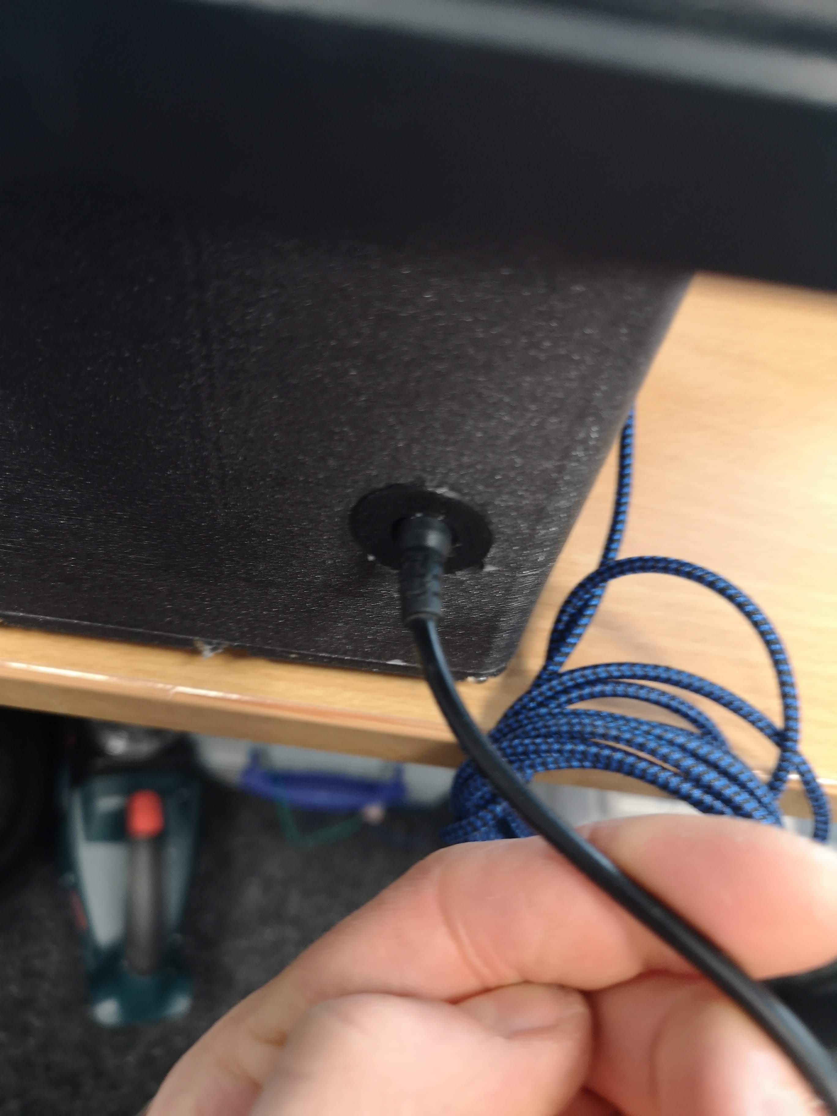 First of all we need to wire up the microscope. For this we will start with the 12V power supply. Unfortunately the powersocket is inside the case, hence you have to first eat some candy in order to better find the spot ;-)