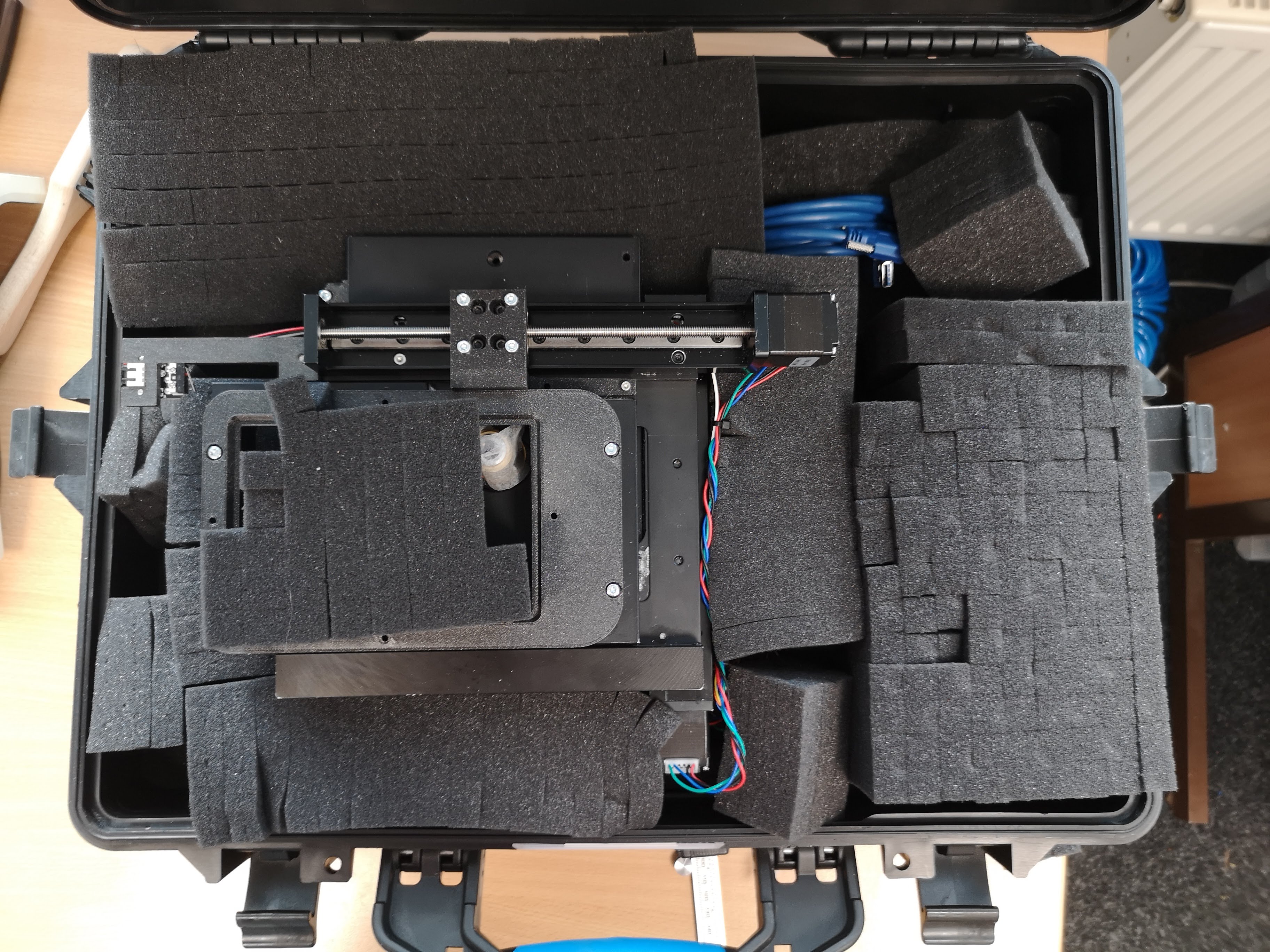 The foam holds the microscope in place (the actual colour may differ from what you may see):
