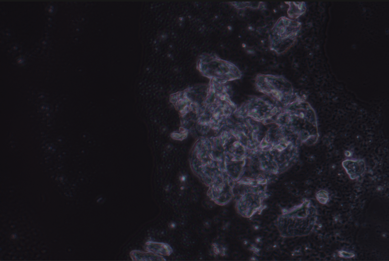 Cheek cells that have be acquired using the phase-contrast and an RGB camera. Together with the RGB illumination using the neopixels, an overlay of 3 images cause the "rainbow" effect
