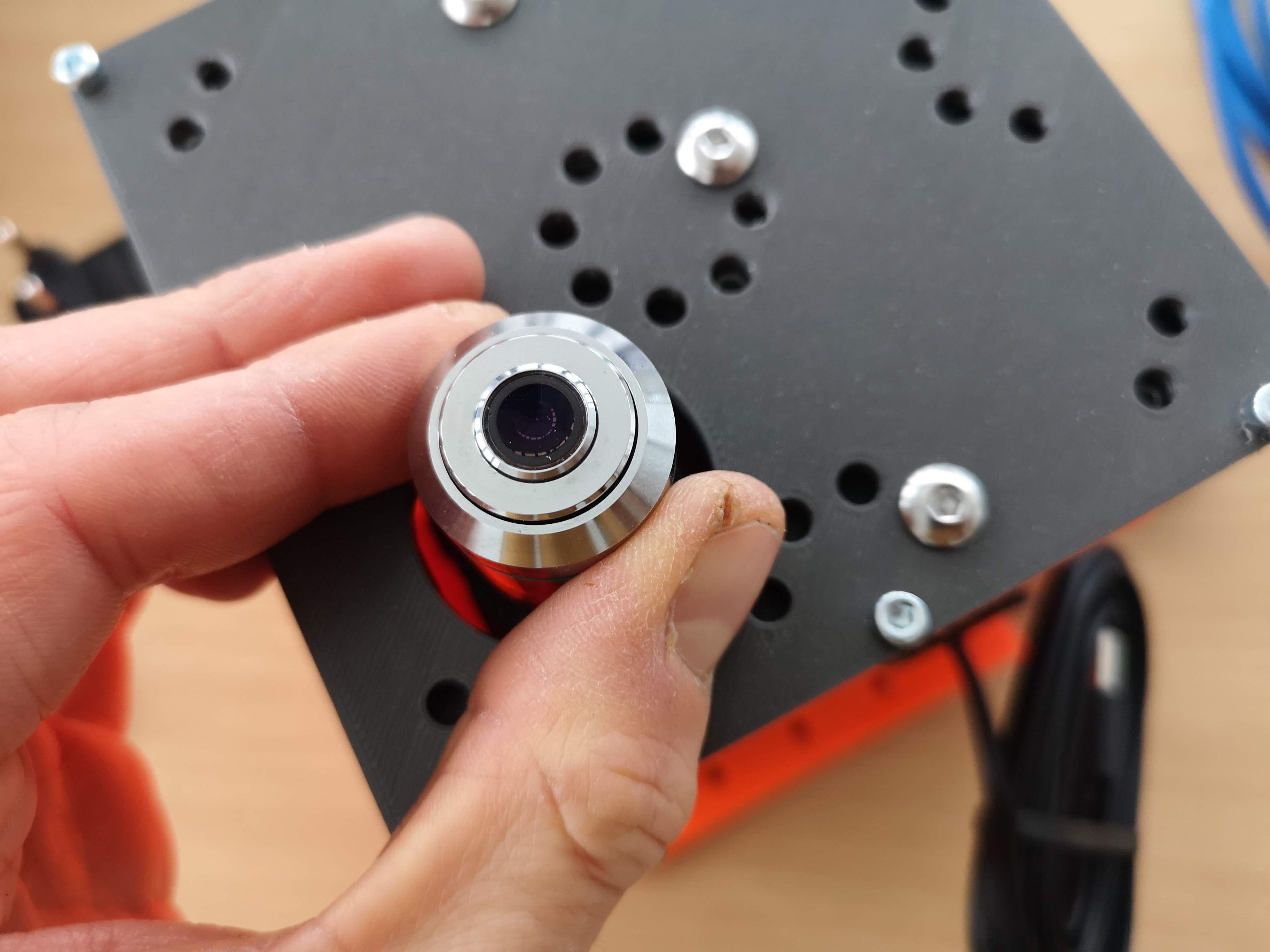 Once done, we continue with inserting the objective lens. Eventually the lens is already inserted and you just need to check if the lens is centered correctly