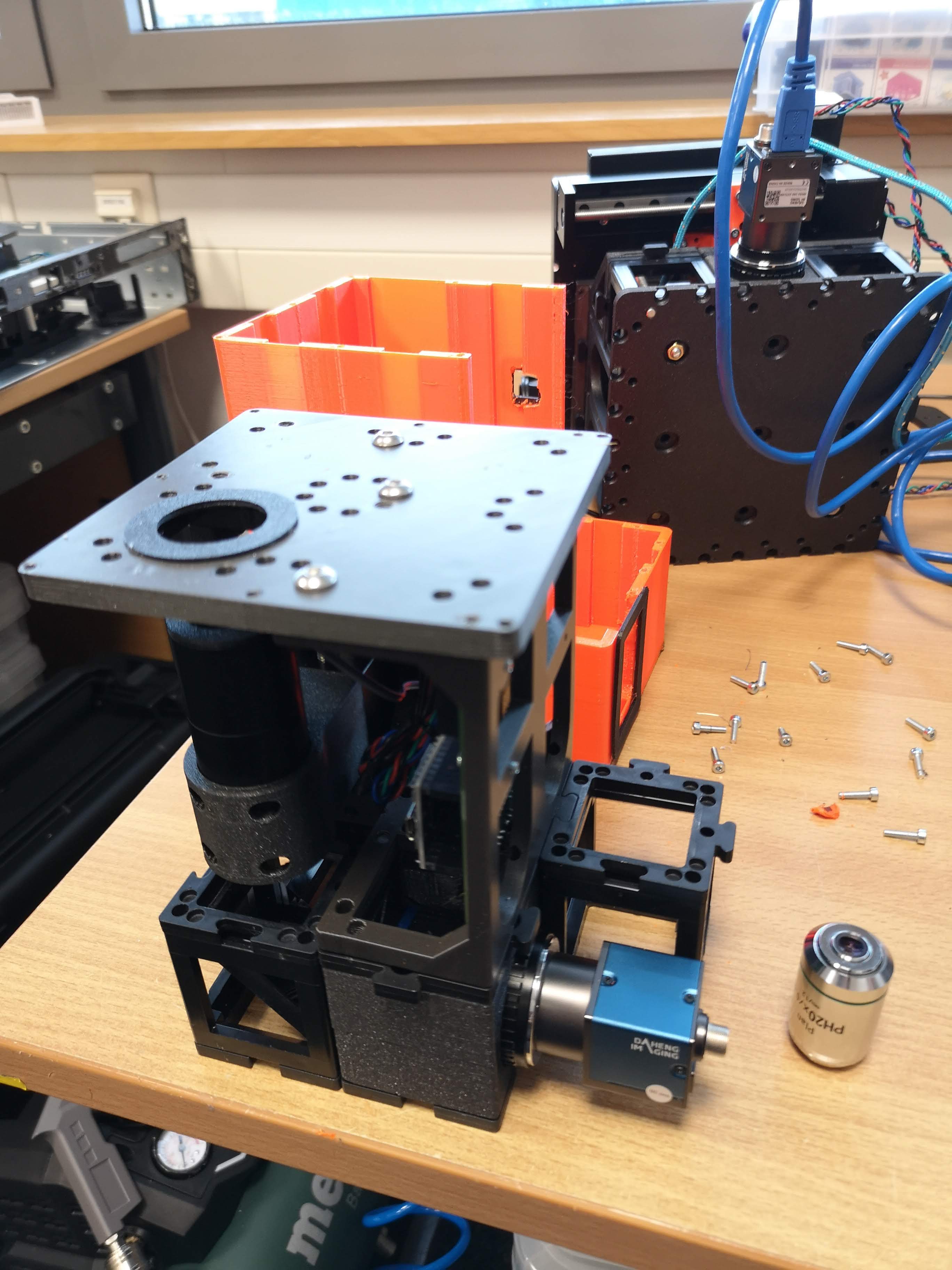 We learn from mistakes. So lets start learning. The system is fully open, meaning, you can adjust and change the vast majority of the parts on your own. The entire system consists of the openUC2 frame / skeleton and the 3D printed housing to shield it from dust and light. By removing all M3 cylindrical screws, you can detech the housing from the inner structure to eventually repair or alter the system.