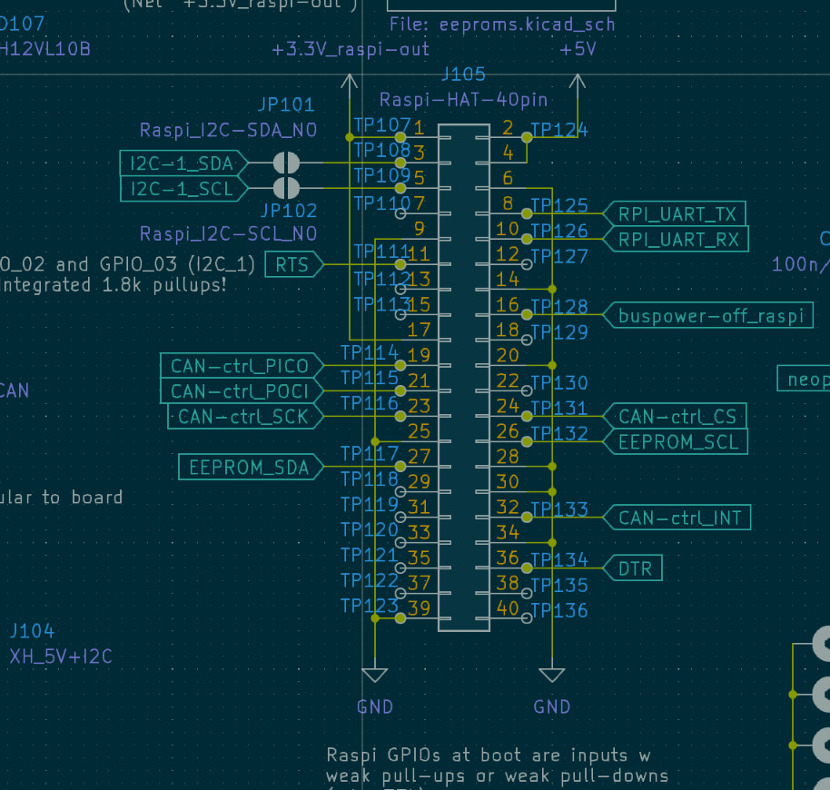 The HAT+ hosts an ESP32 that converts UART/Serial into CAN Control commands for the external components. The pinout is the following: