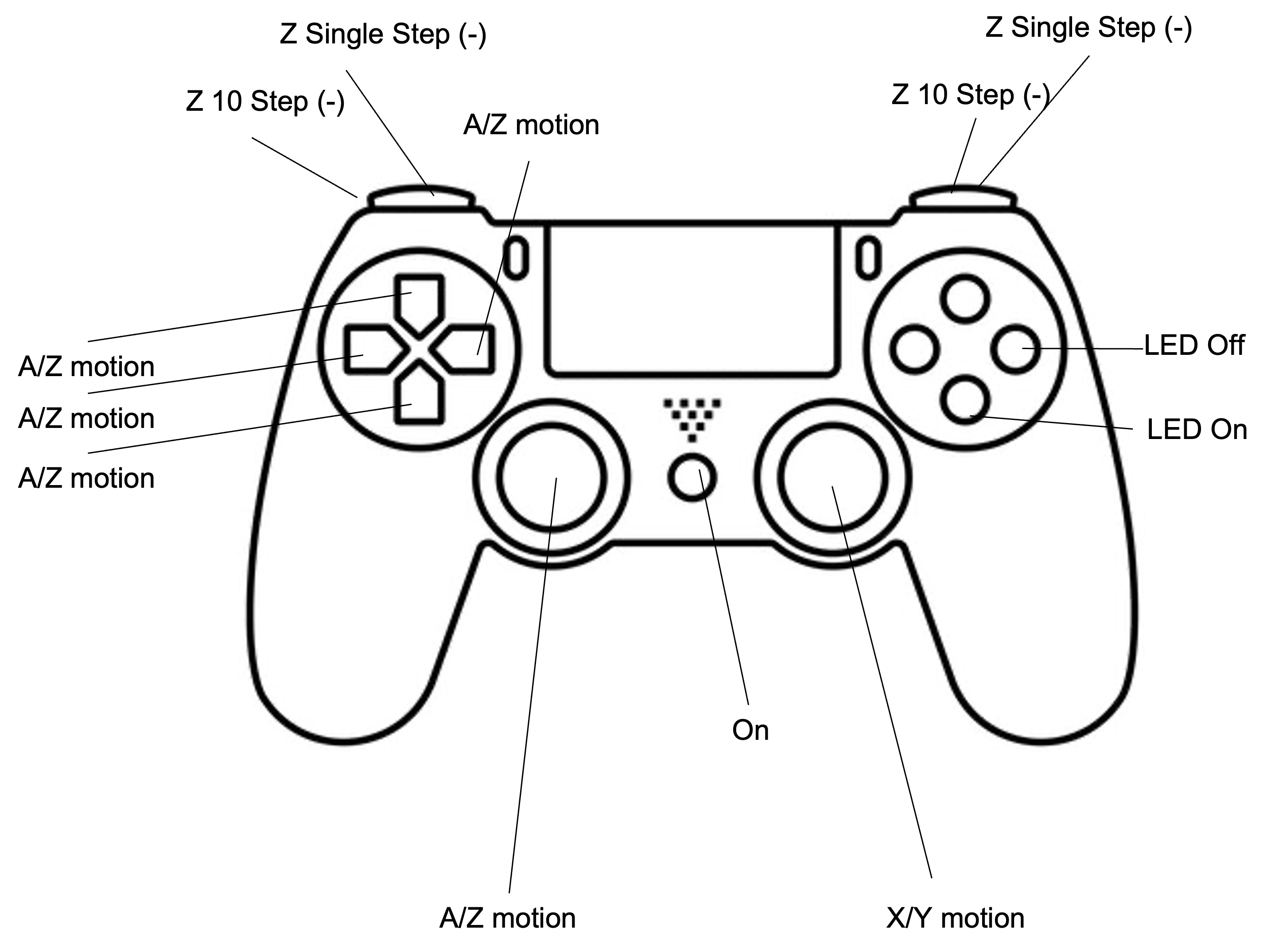 R2 ButtonCoarse Z Stage IncrementRaises the Z-axis by a fixed number of steps (e.g., 10 steps per press).