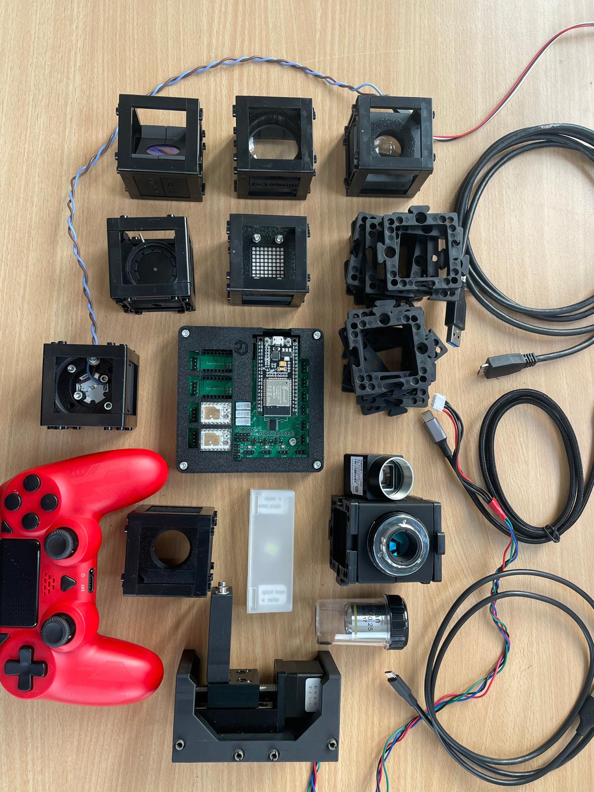This guide will walk you through building the microscope step by step. You can follow the assembly process according to the functional groups or refer to the diagram above.