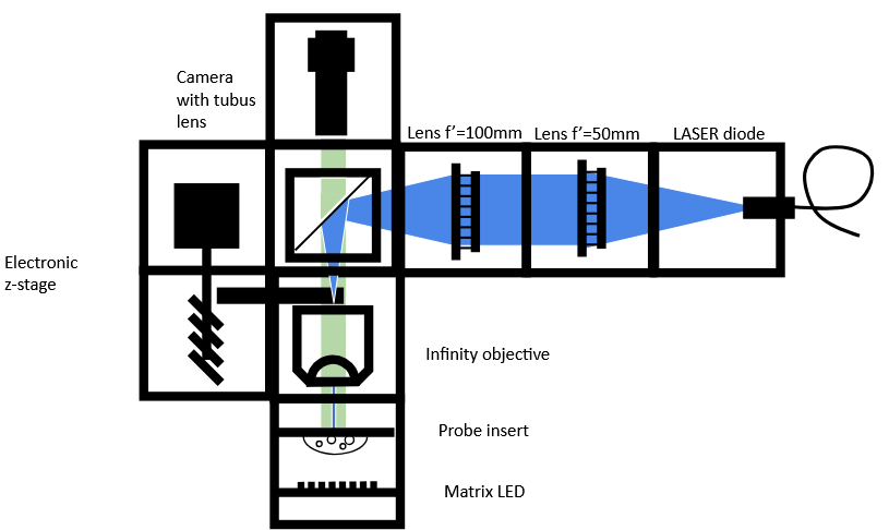 - To turn your microscope into a fluorescence microscope, turn the LED-matrix off and the laser on.