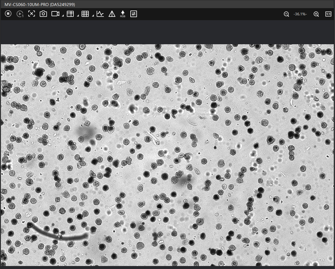 - At this point, you're likely seeing a black screen. This is because the fluorescence (the photons emitted by the probe) is much weaker than the bright LED-Array. To adjust, open the feature tree in your camera programm, go to