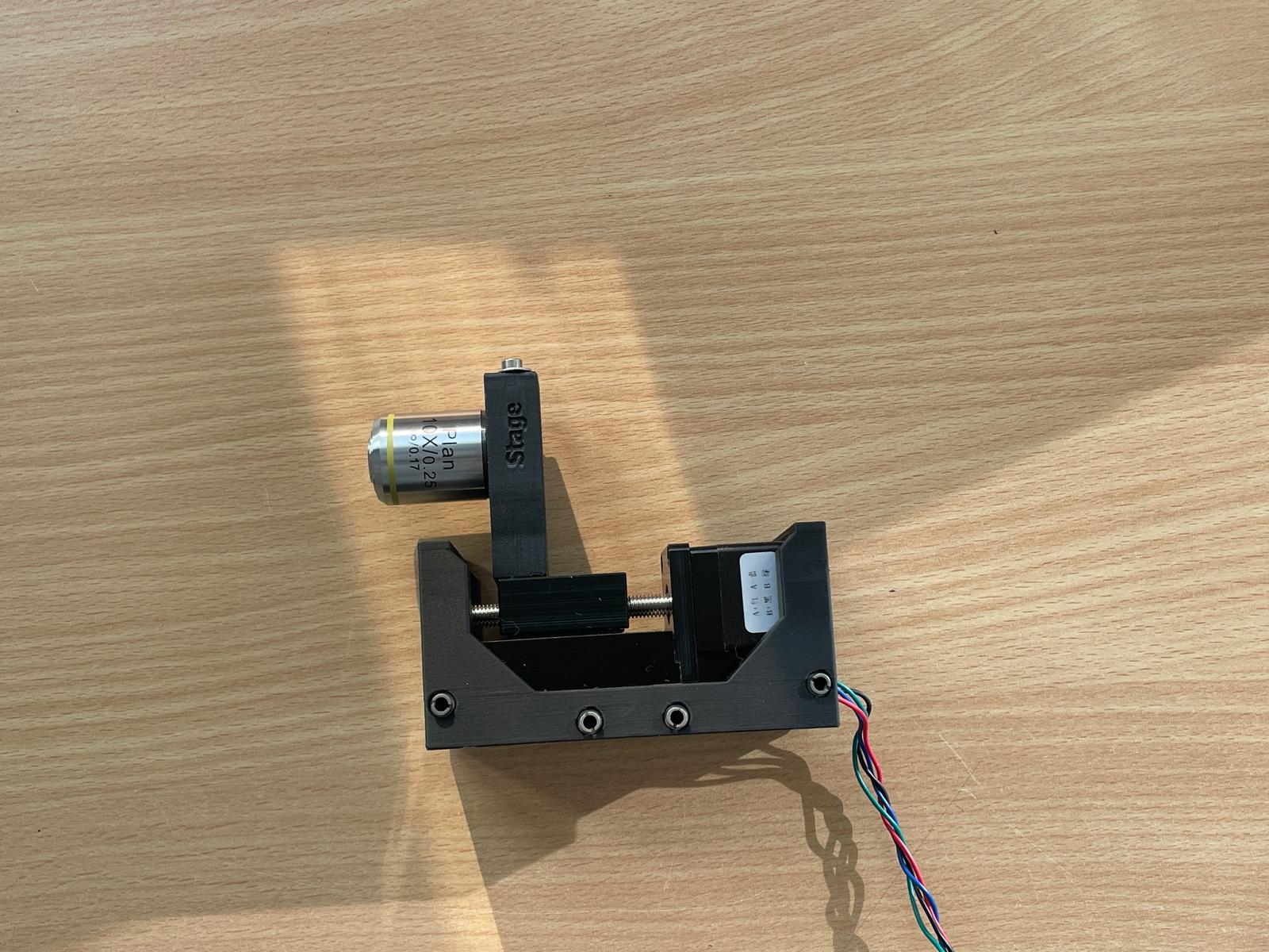 This command will move the Z-axis motor by -1000 steps (1 full rotation) at a speed of 1000 steps per second. Each step corresponds to a movement of 300nm when using microstepping. You’ll observe the motor rotating, adjusting the focus.