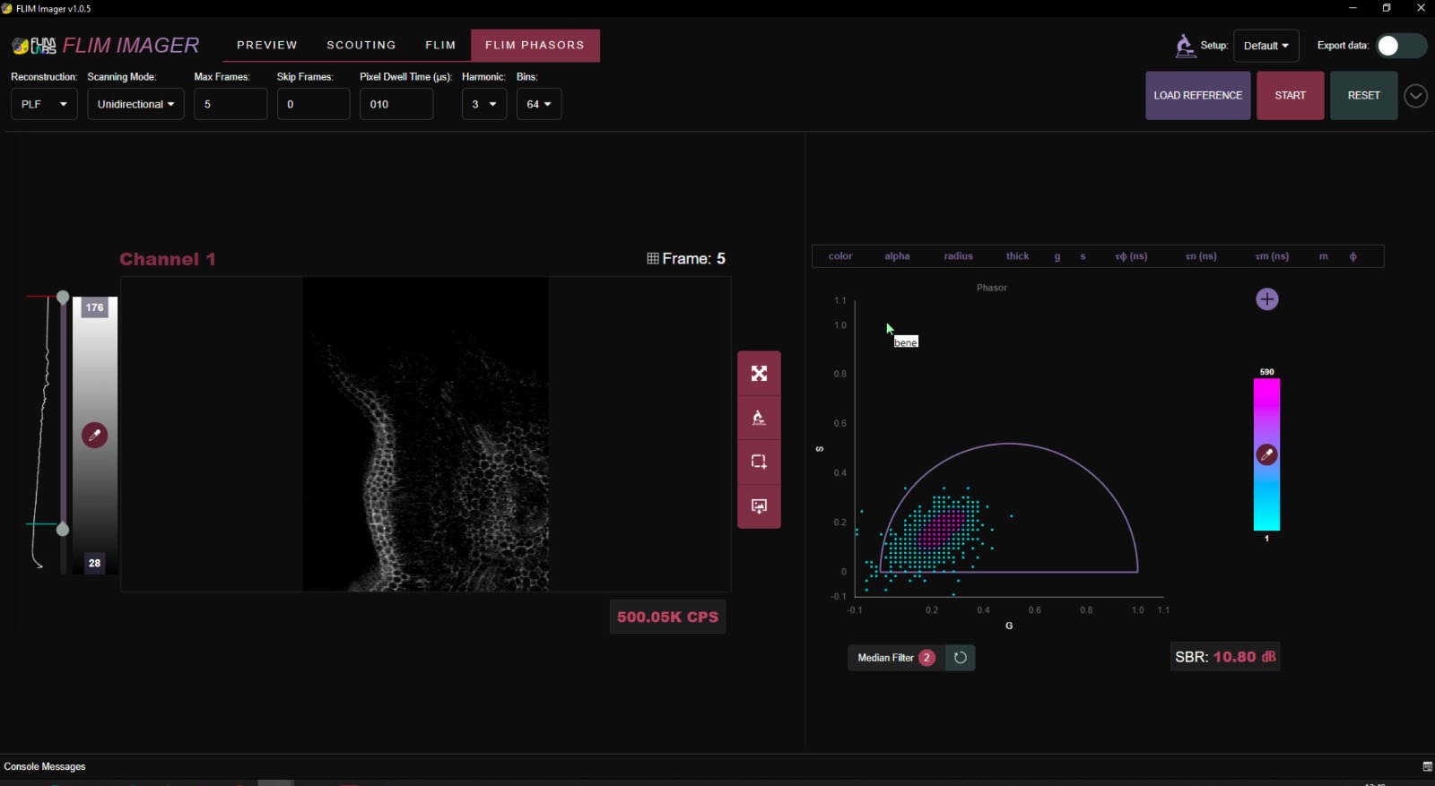 A camera gives you intensity in parallel across a 2D sensor. Great! But it's very hard to add an additional axis to that (e.g. a spectrum; Sure there are multispectral approaches or there is light-field cameras, but this is all very expensive and specialized..). A point scanner trades parallelism for per pixel richness: you pause on one position, collect additional information such as a time-resolved fluorescence signal, then move to the next pixel. In theory. Of course one dream of us was to have an affordable laser scannin system and together with FLIMLabs, we finally got this working! Fluorescent Lifetime per pixel :)