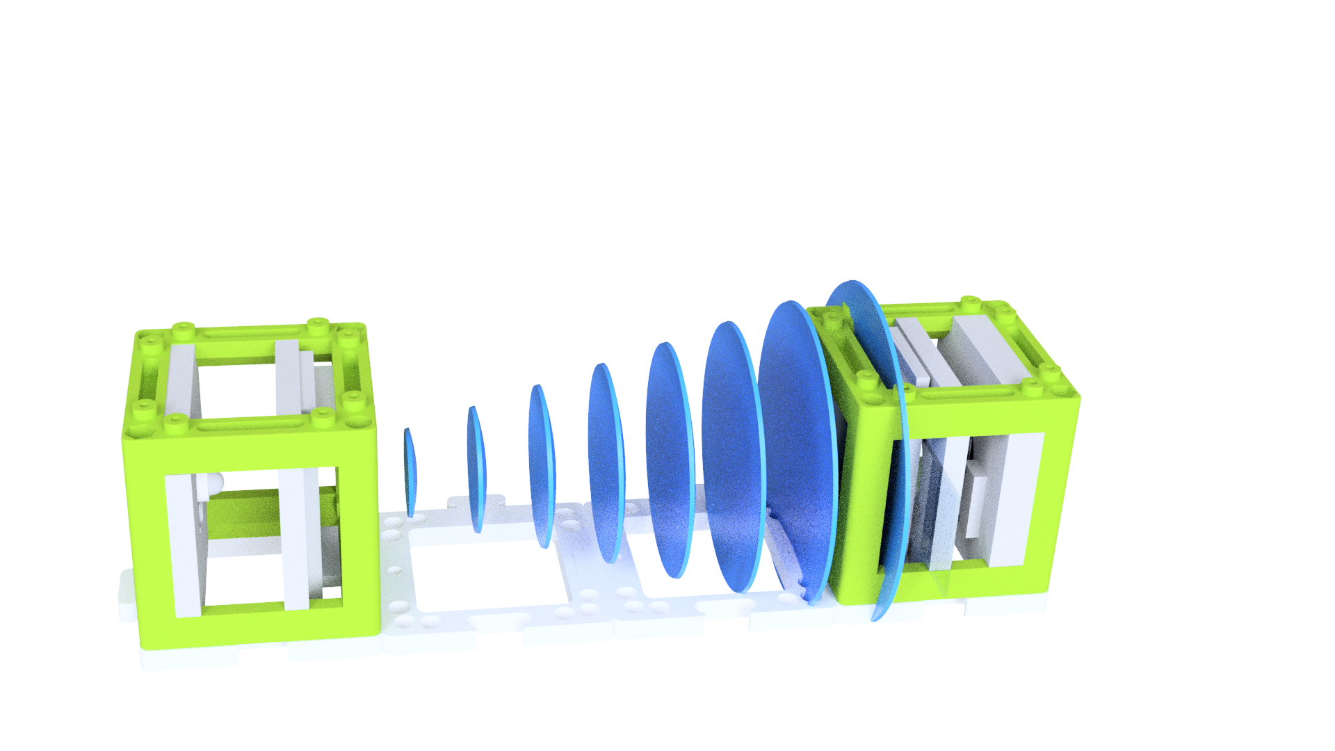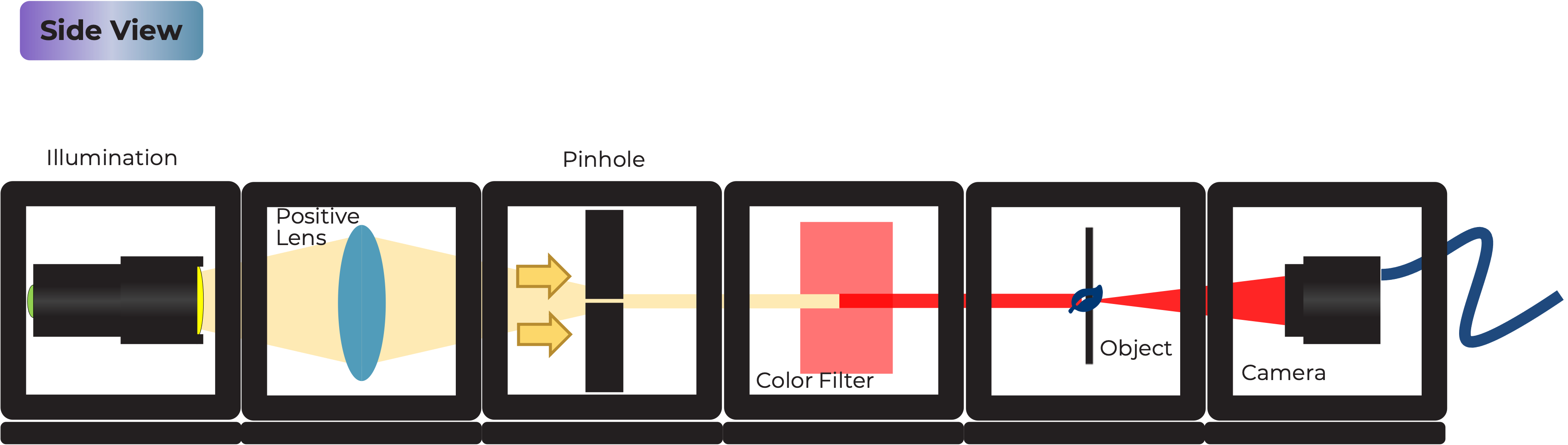 - Arrange the cubes in the following order (from left to right): Light Source Cube, Empty Cube, Empty Cube, Sample & Camera Cube.