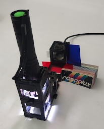 - Gel color filter (green or red) for quasi-monochromatic illumination