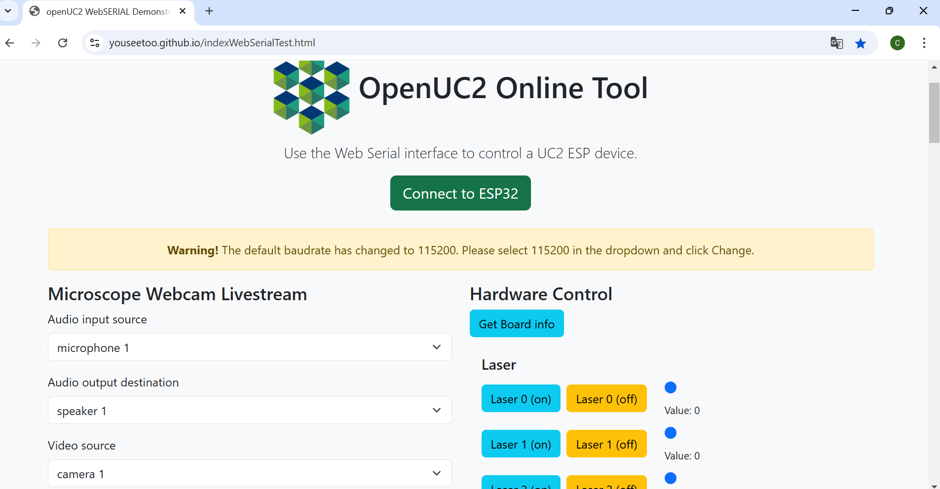 - Before proceeding, ensure your ESP32 board has the latest firmware. You can download and flash the firmware via the official openUC2 website, selecting your version, then click on the