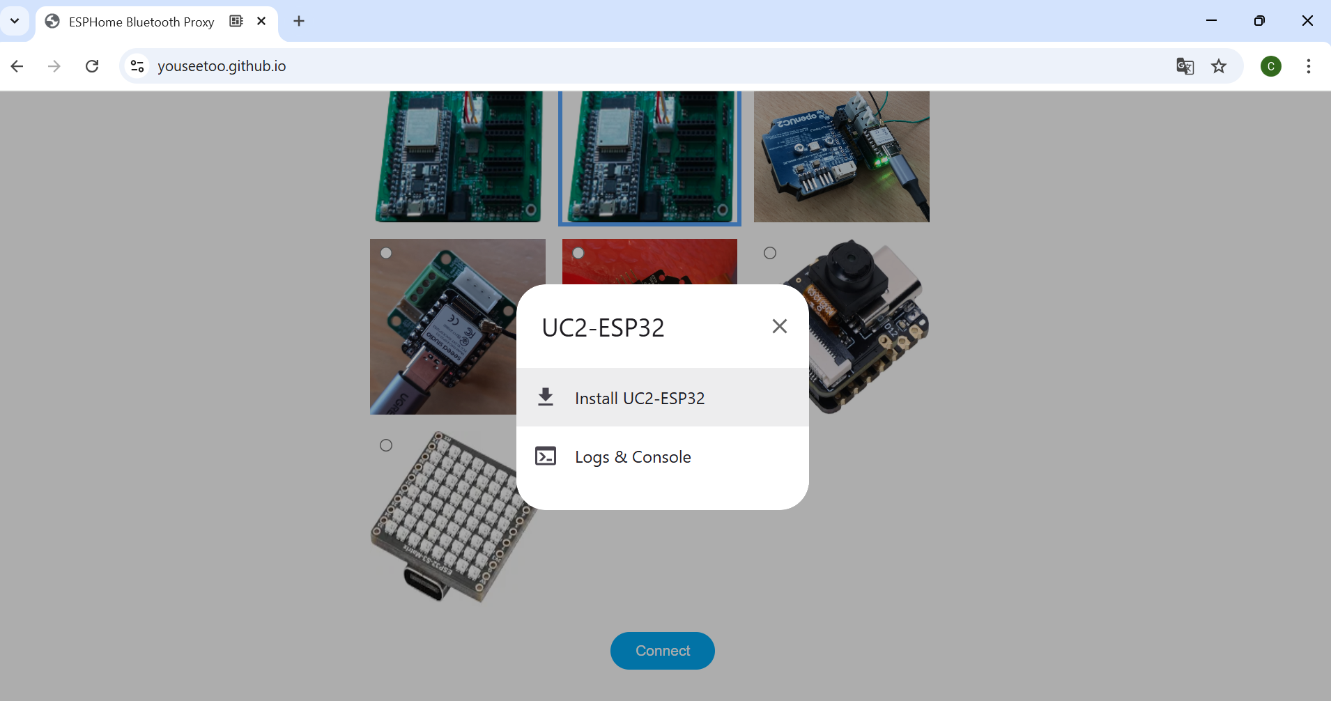 CP2102 USB to UART Bridge Controller. Once connected, you can install the latest firmware by simply clicking the "Install" button.