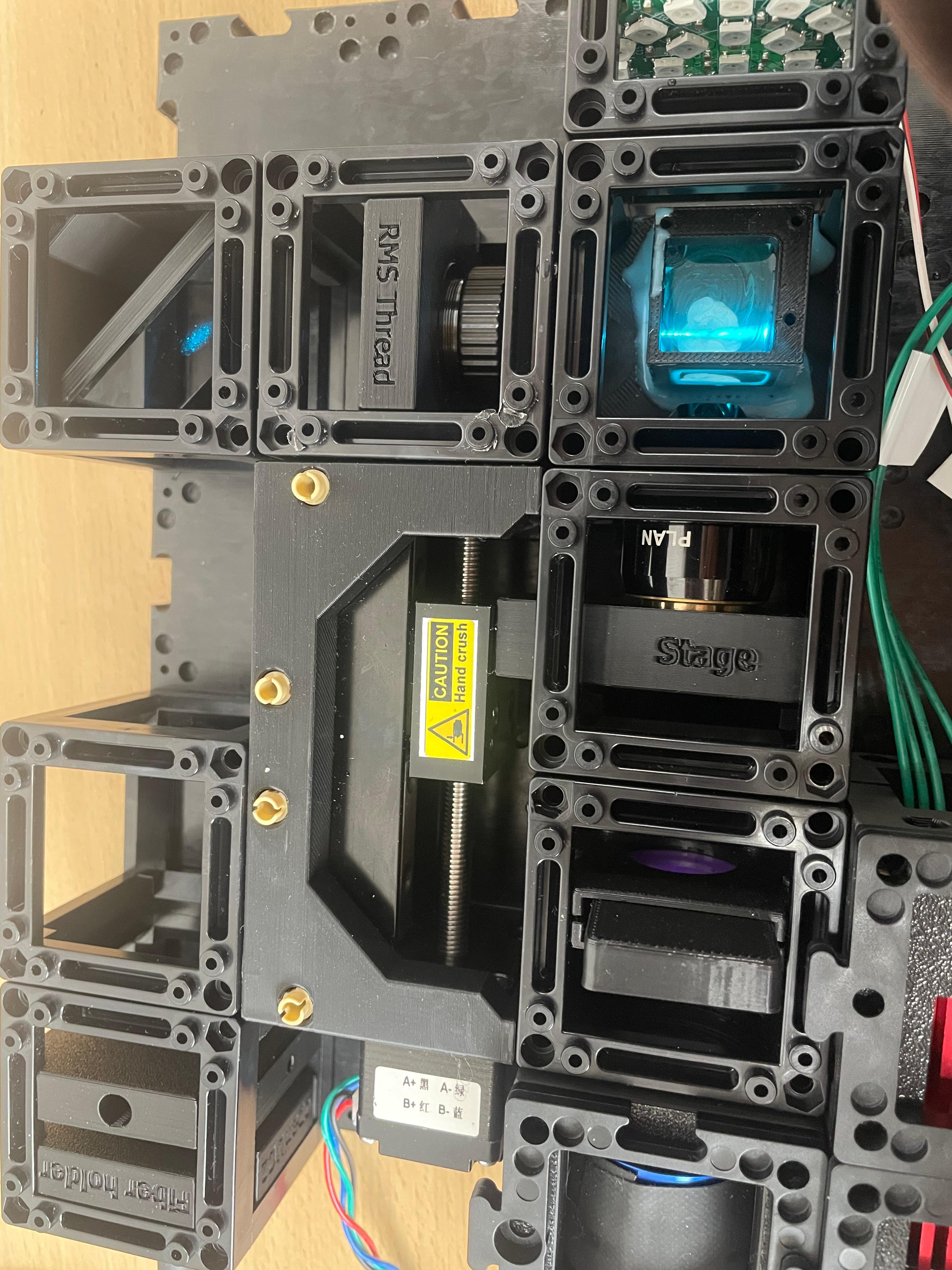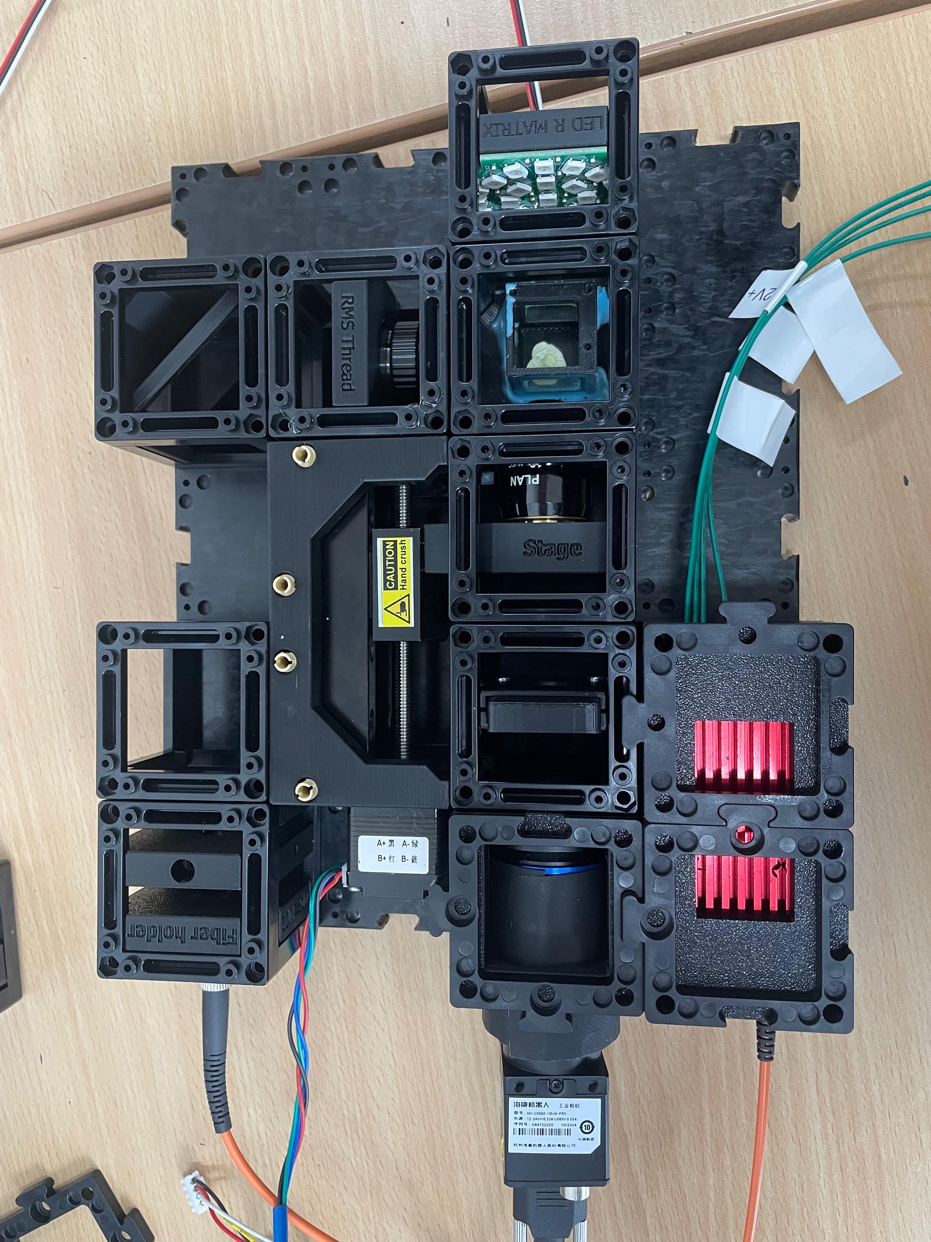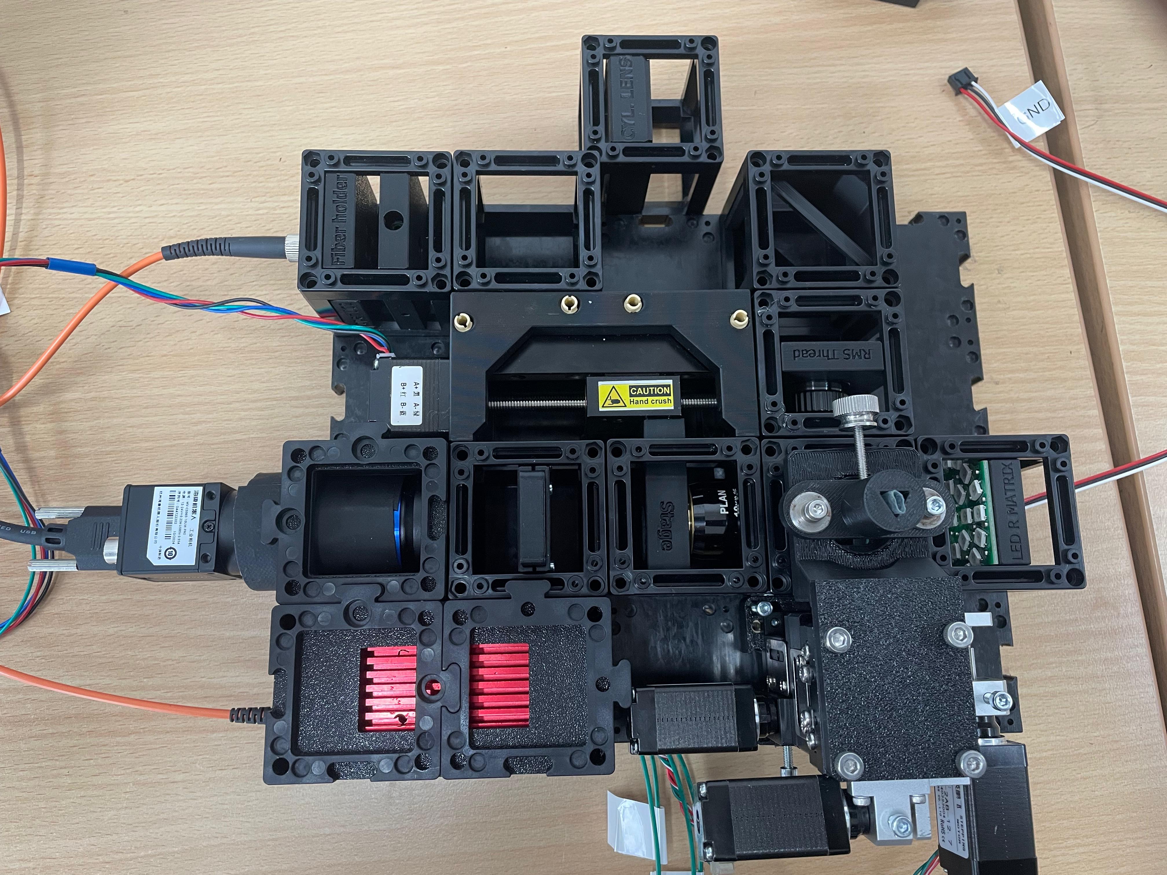 This guide will walk you through the microscope assembly step by step. You can follow the process according to the functional modules or refer to the diagram above for orientation.