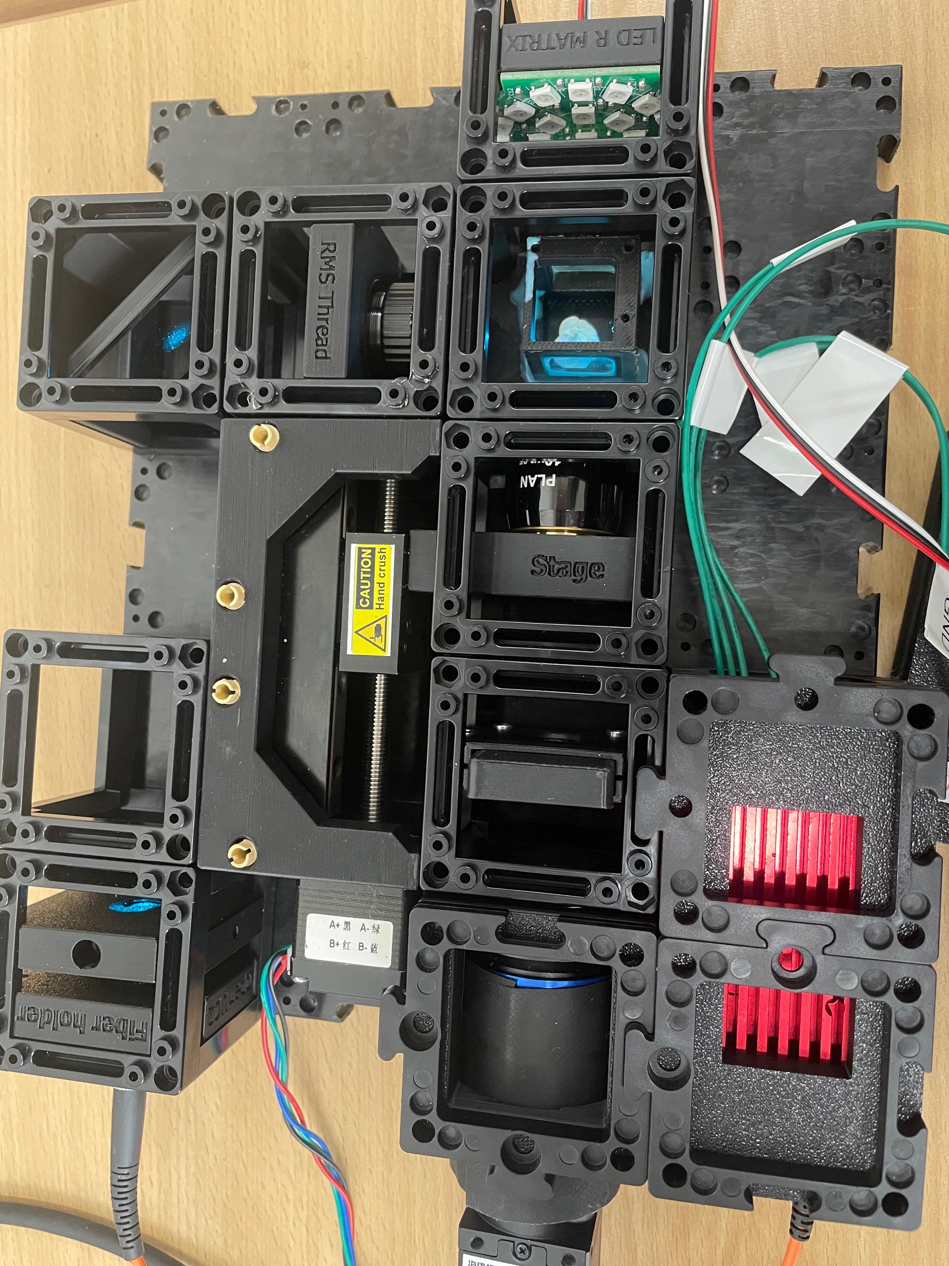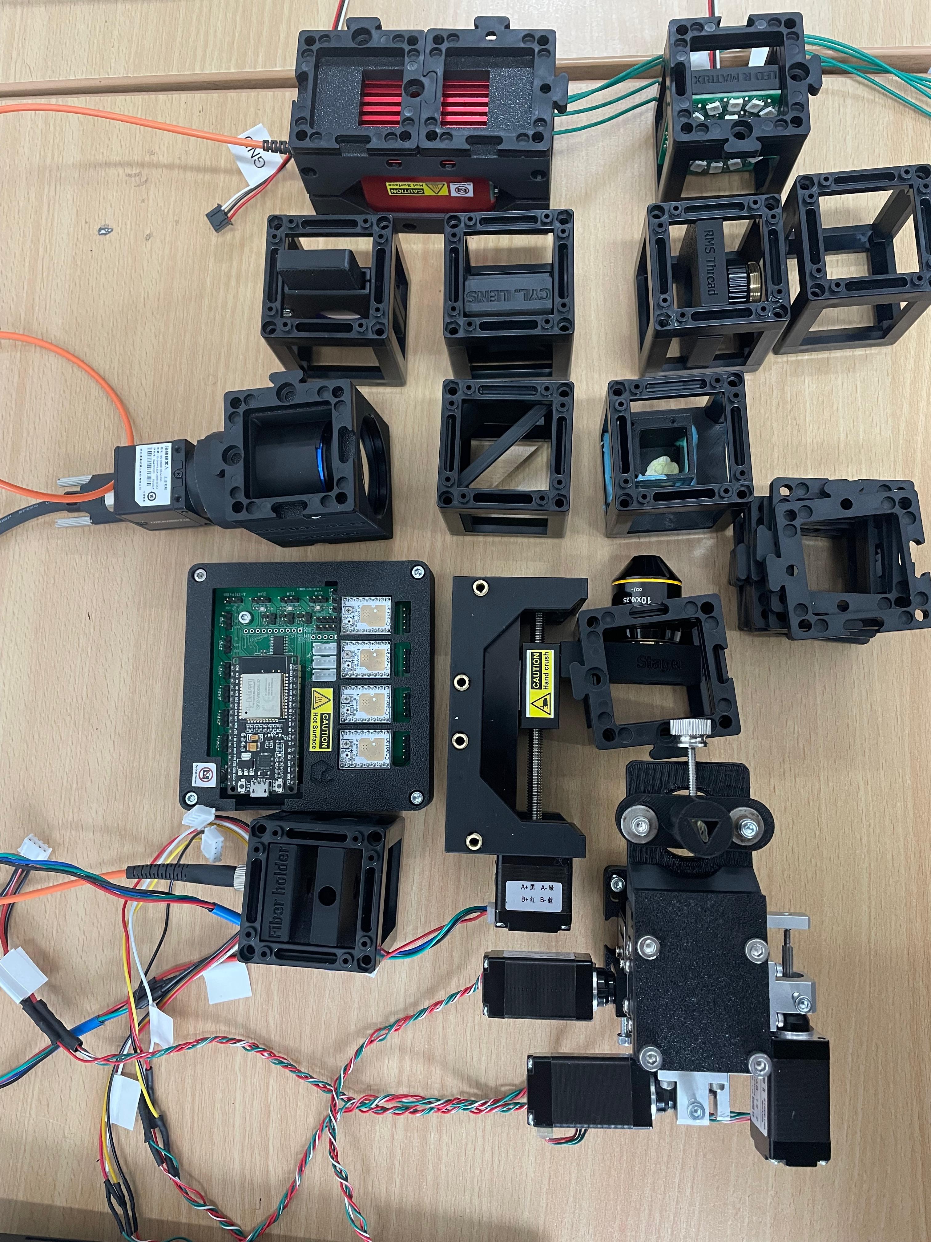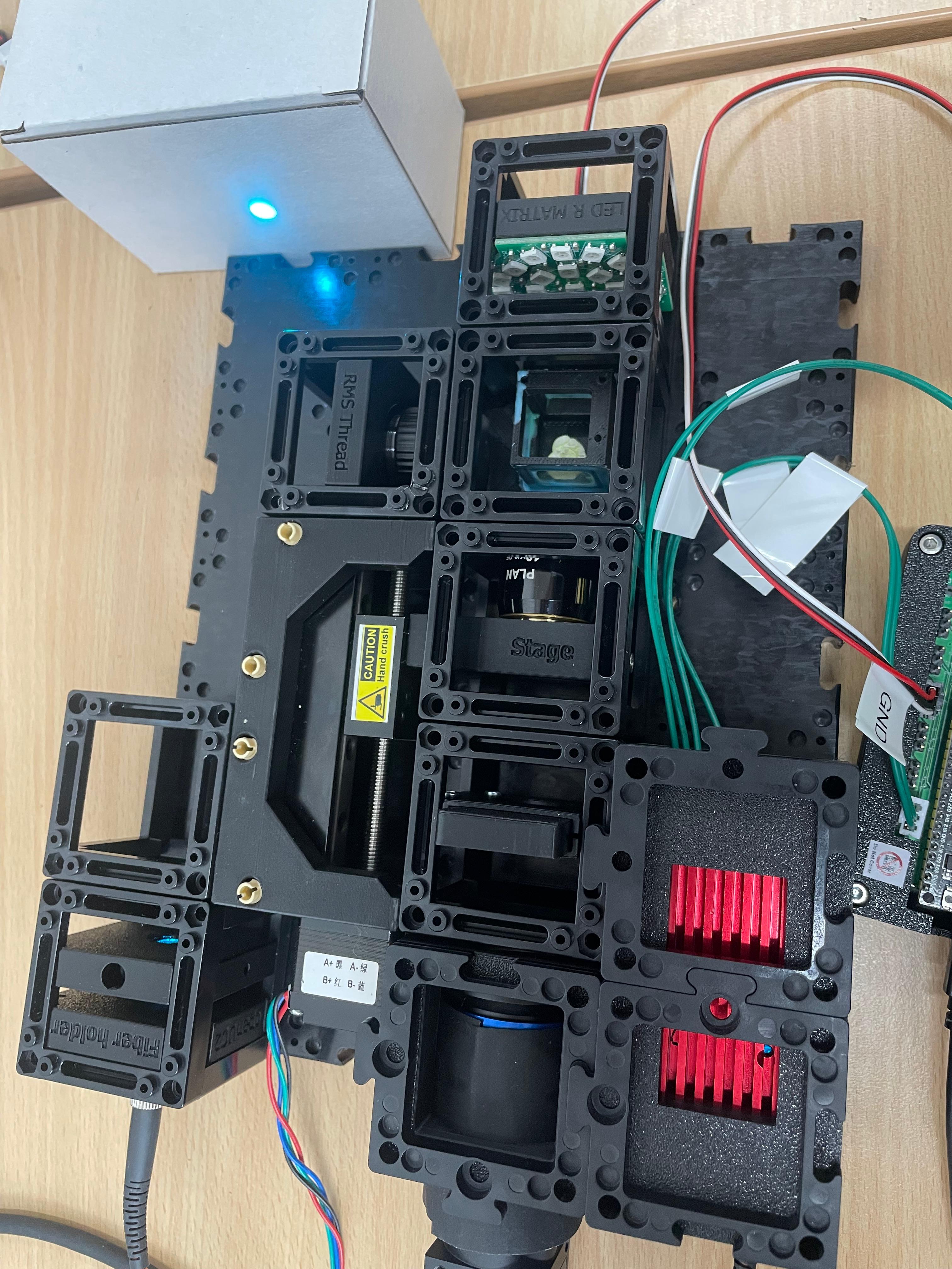 This guide will walk you through the microscope assembly step by step. You can follow the process according to the functional modules or refer to the diagram above for orientation.