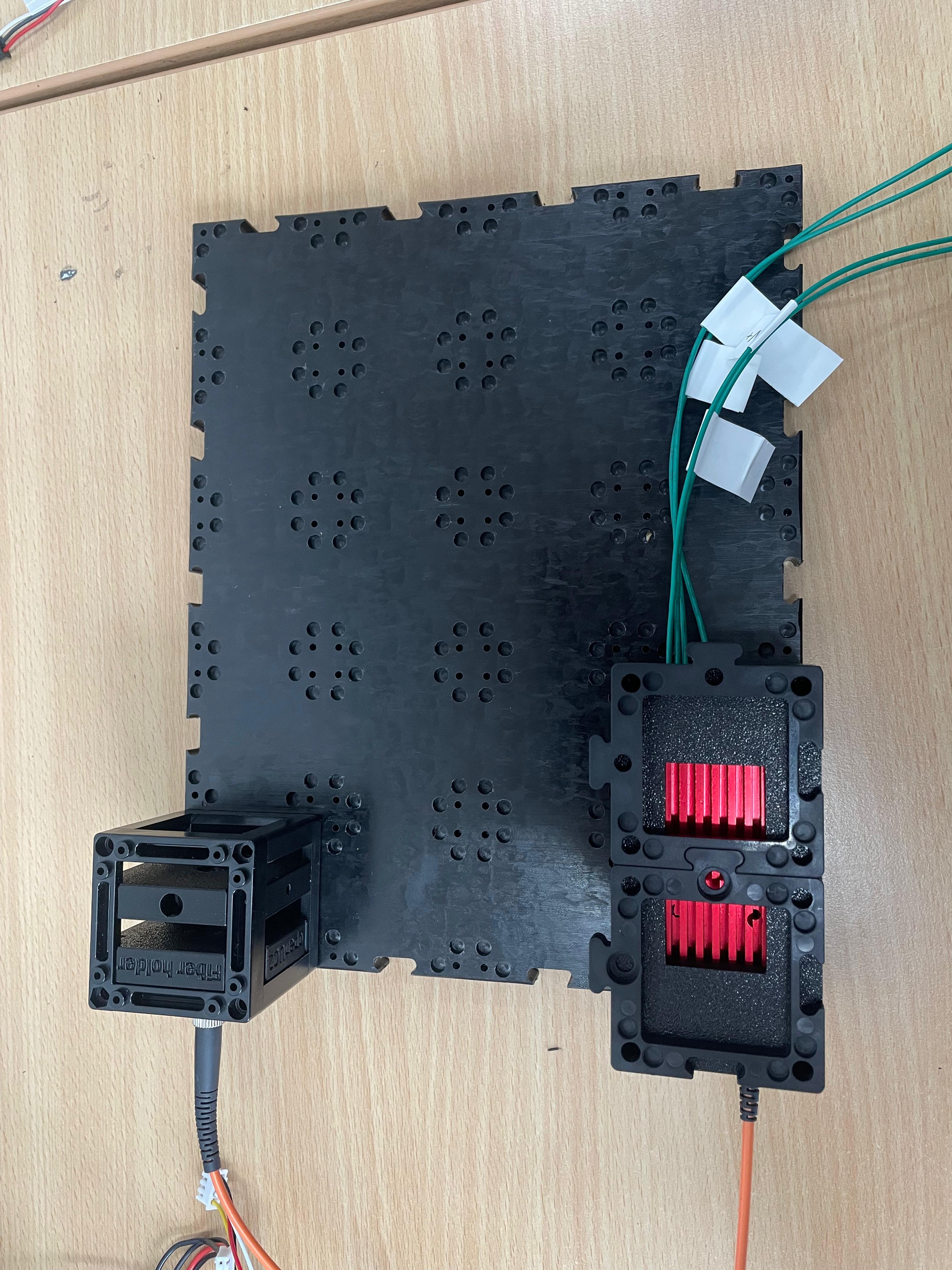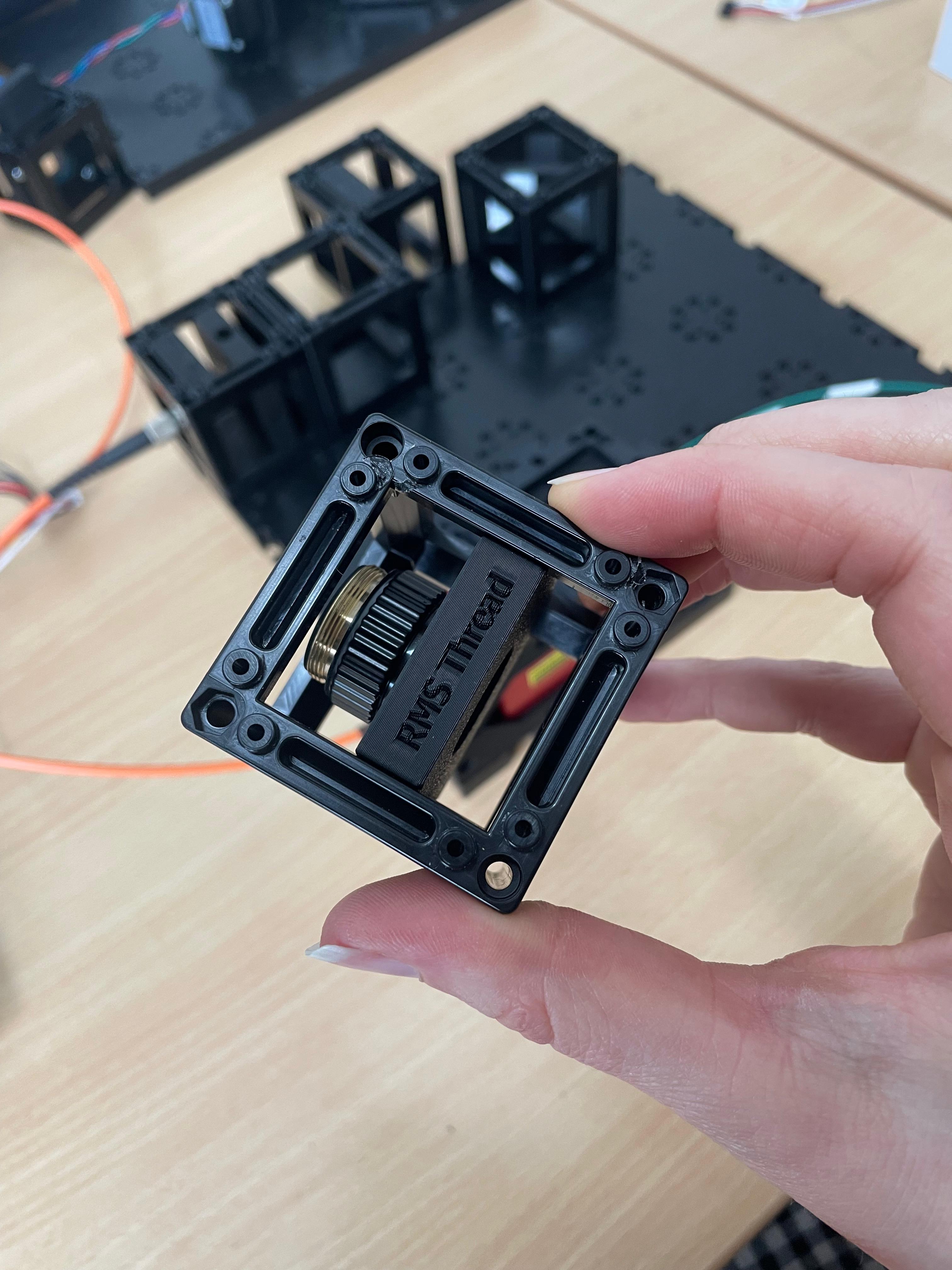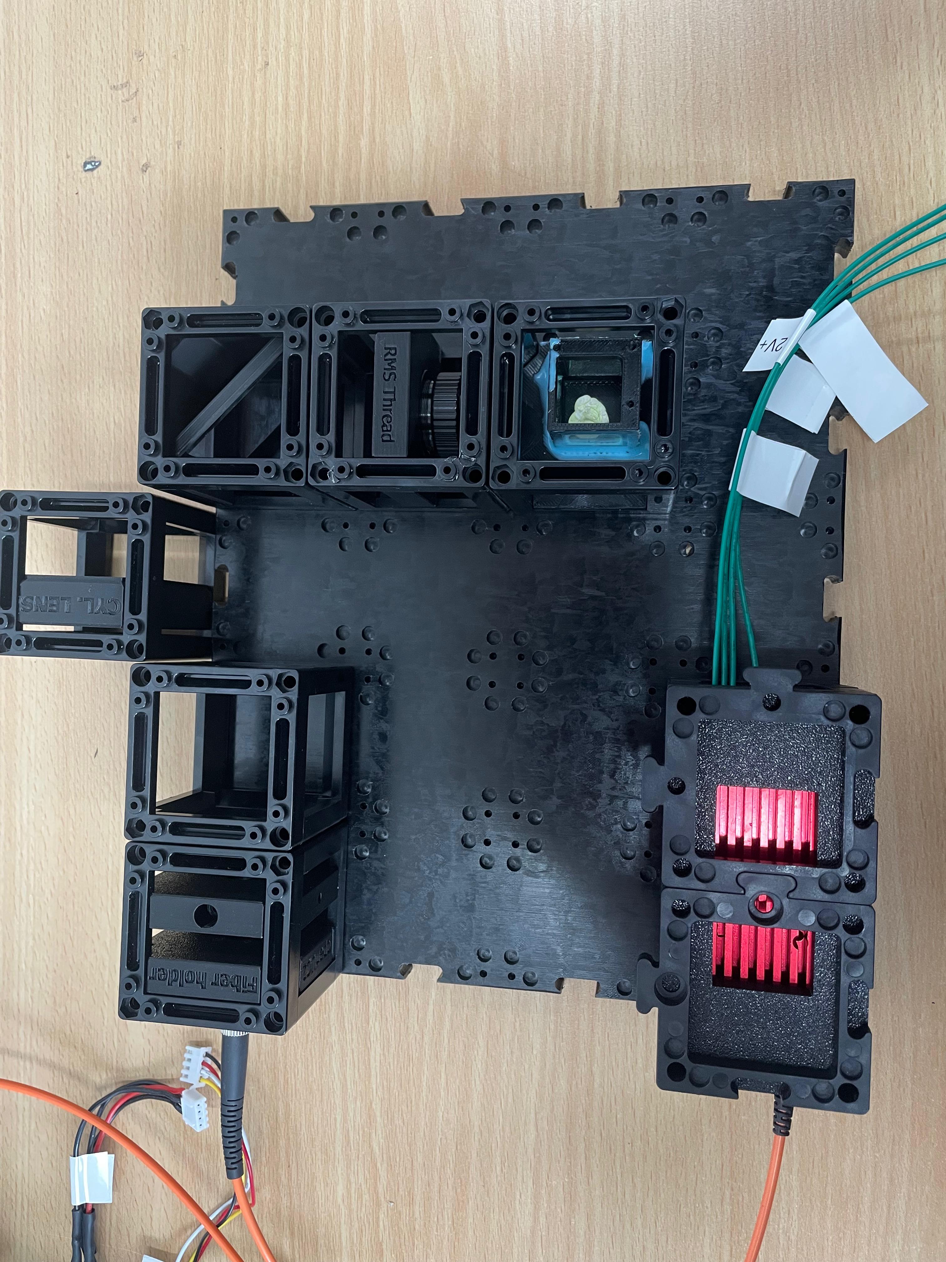 Important: Make sure you don't put puzzle pieces on the cylindrical lens and mirror yet — leave them easily removable for adjustments during Step 3. Only secure all components once alignment is complete.