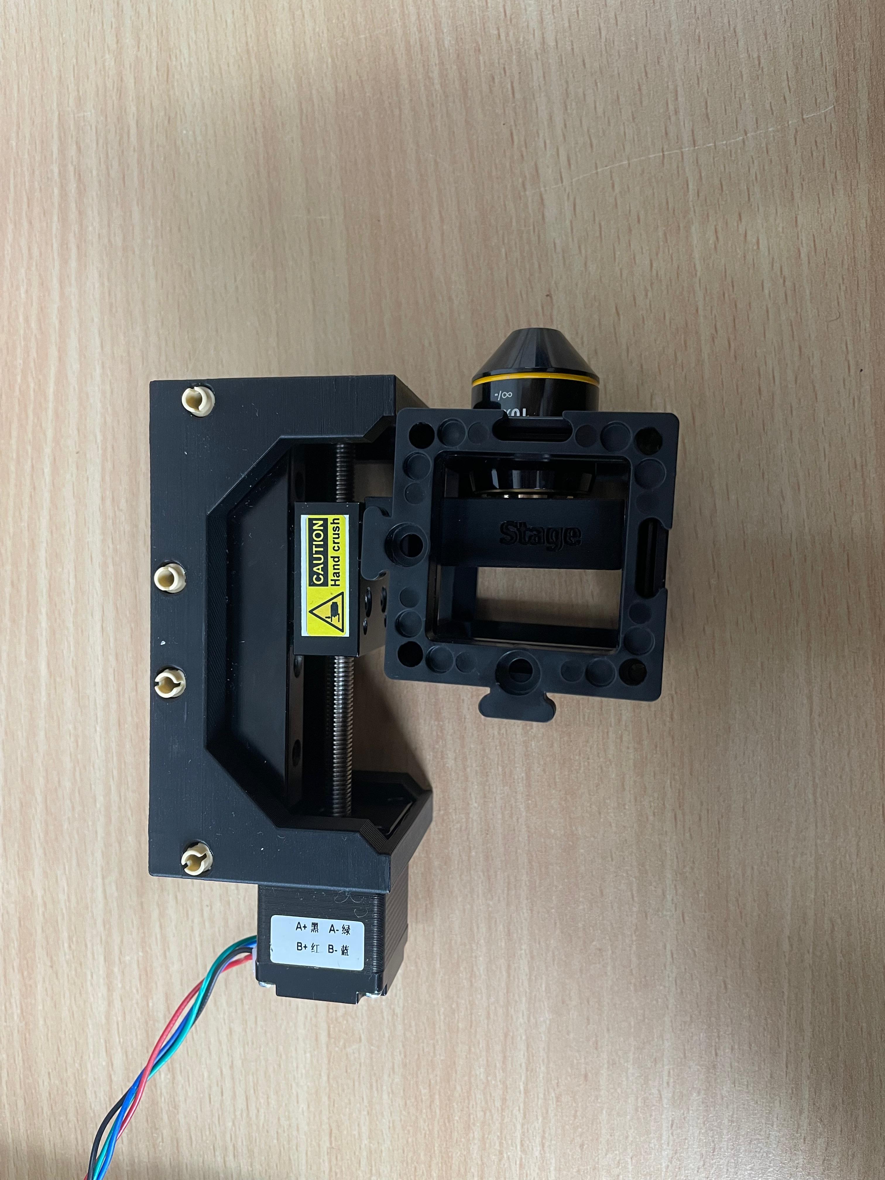 Install the motorized Z-stage. Attach the 10× infinity-corrected objective to the stage. This objective is used for imaging.