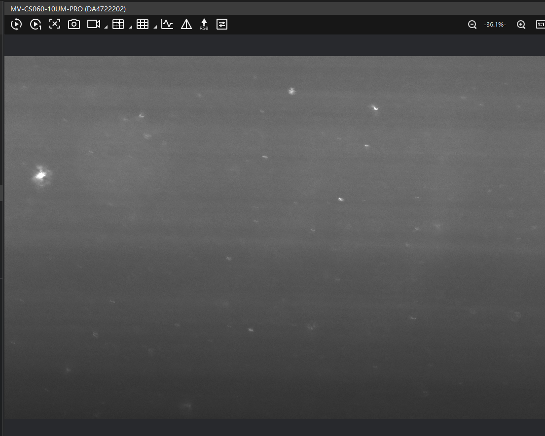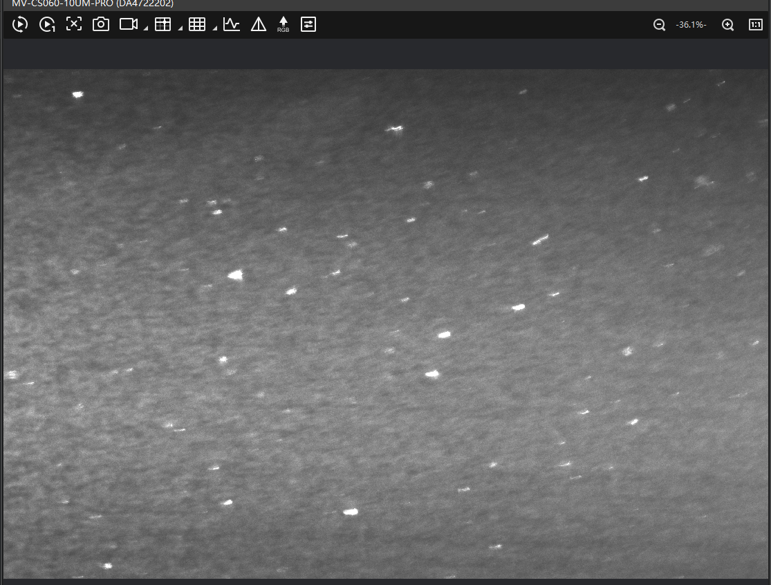 You should now see a dark image with only a few bright dots. These are the particles in focus.