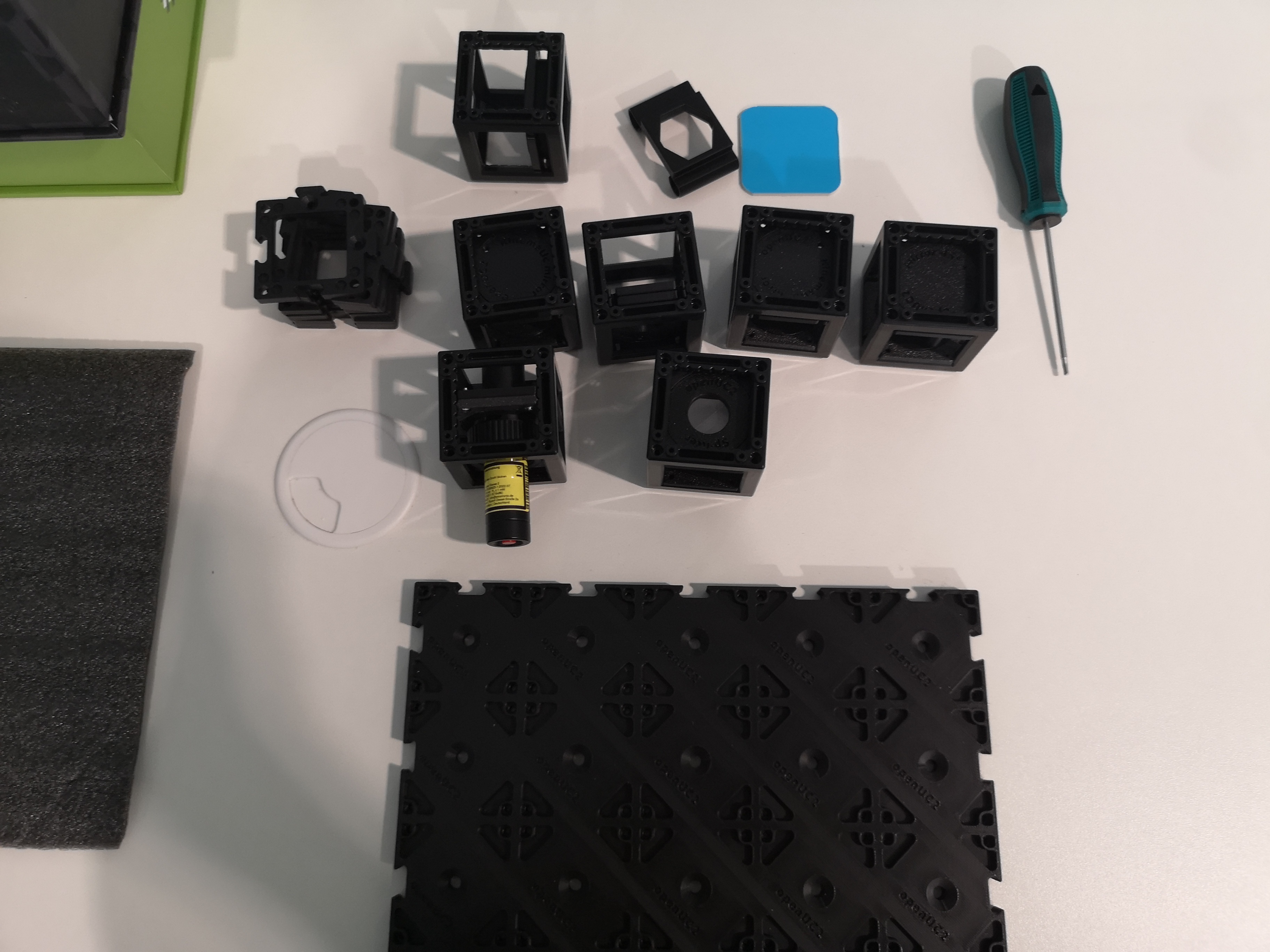- 8+ optical cubes with threaded inserts