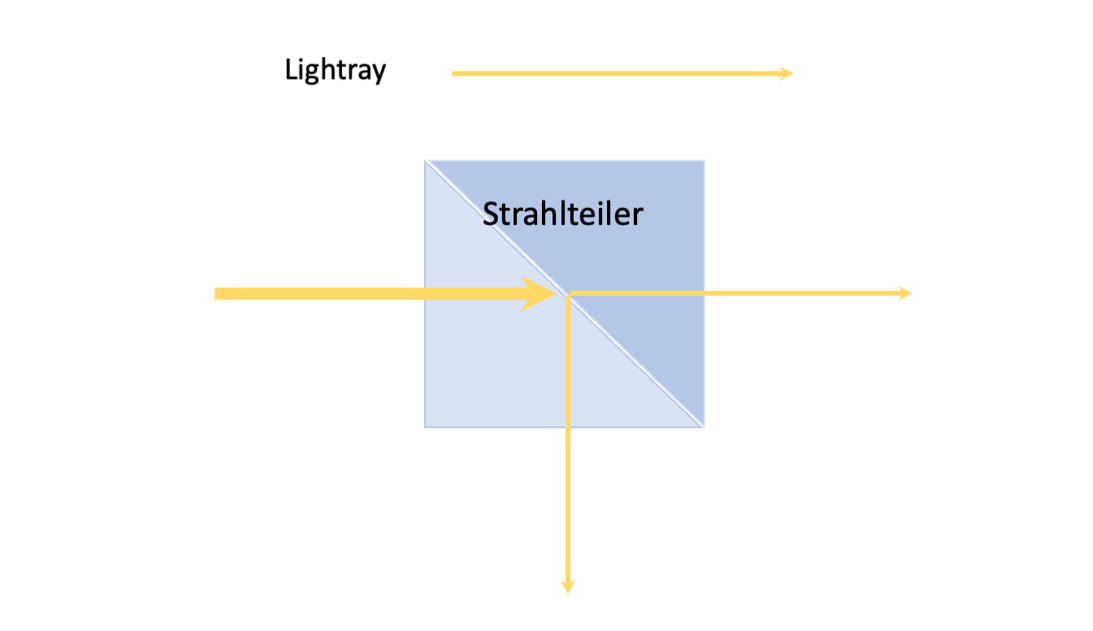 In ray optics, light is represented as a bundle of rays (arrows), which entails a simplification pf the physical properties of light. The arrow indicates the direction of the beam direction/light. The beam splitter divides the light in to two different directions in t terms of magnitude. Here i is important how the beam splitter is built into the cube.