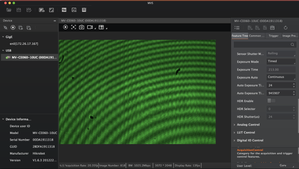 remove the screen and place the camera behind the beam splitter and fix it with the base plates. Connect it to the computer and open the MV Software. To check the MVS tutorial click here.