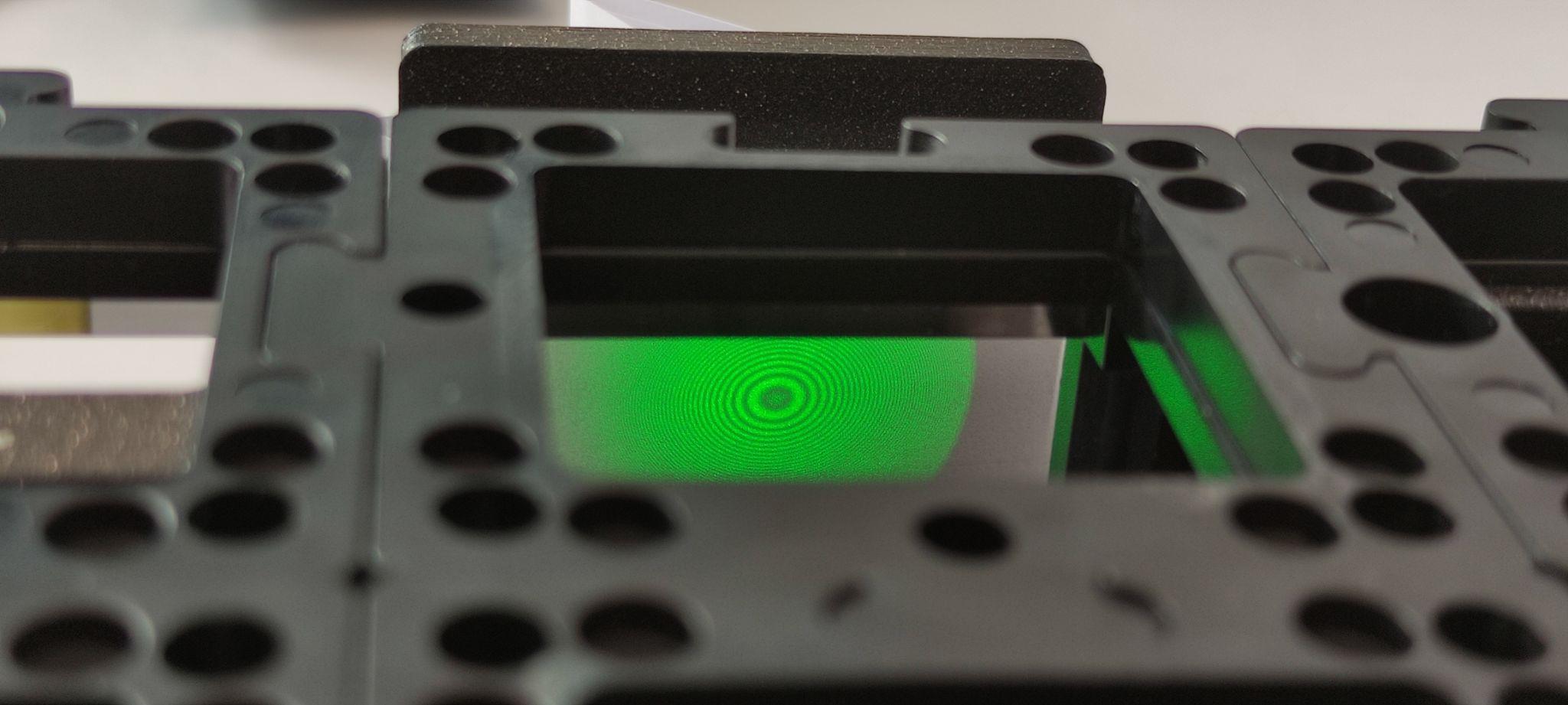 Start with the laser and place it on the plate at this very location (don't turn it on yet)