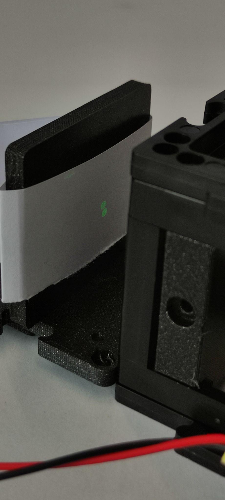 After the complete Assembly, remove the lens and turn the laser on. You will now see two beam spots, one from each mirror. Adjust the movable mirror angles with the screwdriver so that the two beamspots overlap as much as possible.
