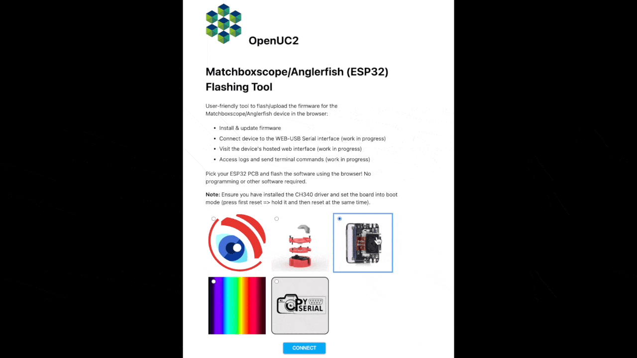 - Visit Matchboxscope Firmware to flash the Xiao firmware.