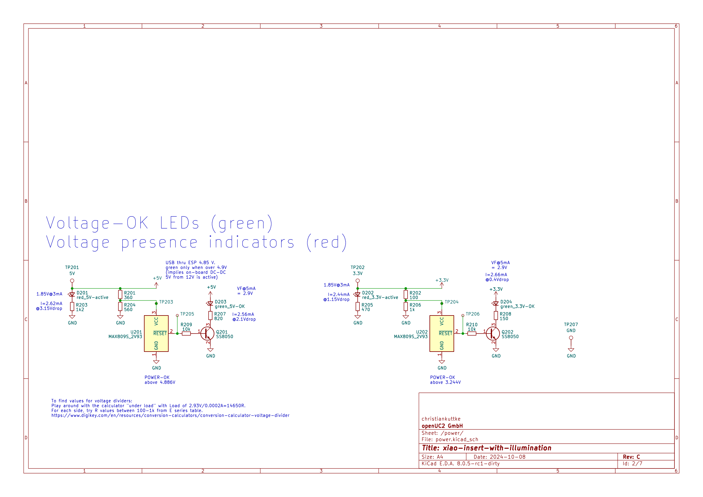 - Powered via 5V input from the Xiao USB port, with a power distribution setup across the board.