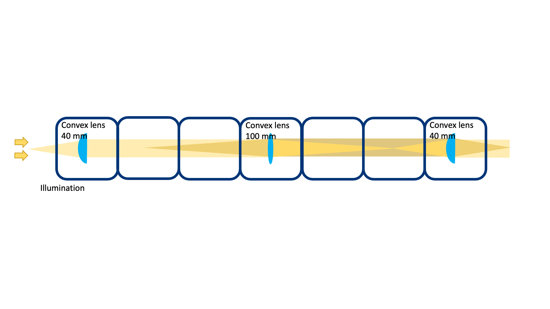 - Task 1: Form an image of the LED emitter with M = -1, using the Gaussian lens equation to calculate the focal length.
