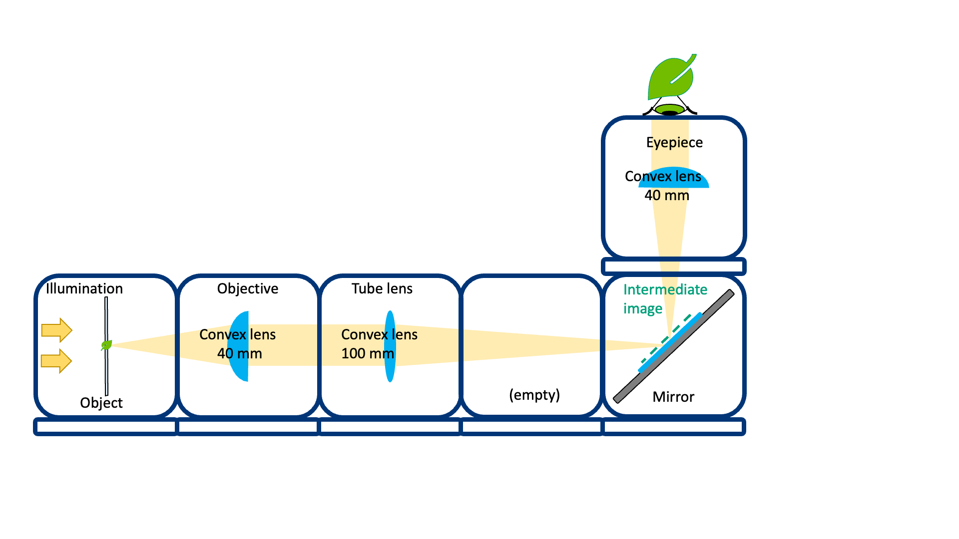 - Task 3: Form a magnified image of the LED emitter with M = -4. Confirm distances empirically and measure the image size to calculate the emitter size.